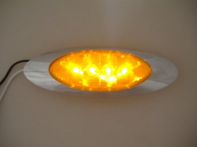 (1) Bright 4 LED Amber Marker / Clearance Light with Chrome Cover 4 LED 6 1/2" Length by 2 1/4" Wide by 3/4" Depth with two mounting holes (4 3/4" apart). Removable Plastic Chrome Plated Cover snaps onto the base to hide the mounting plate and accents the Light. Mounting hardware is not included. Surface mount light for easy installation. The light is hard wired with two 5" wire leads and bullet style plugs. These Lights are impact resistant and less susceptible to shock damage. Each LED is directly wired and water-tight sealed. These LEDs draw less current, generate less heat and are brighter and light faster than an incandescent bulb. 12 Volt Input. Read more...