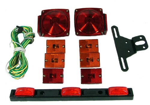 Contains: 2 - incandescent red square stop/turn/tail lights 4 - amber incandescent clearance lights 2 - red incandescent clearance lights 1 - red incandescent tri-bar light 1 - 25' wire harness 1 - license plate bracket. Read more...